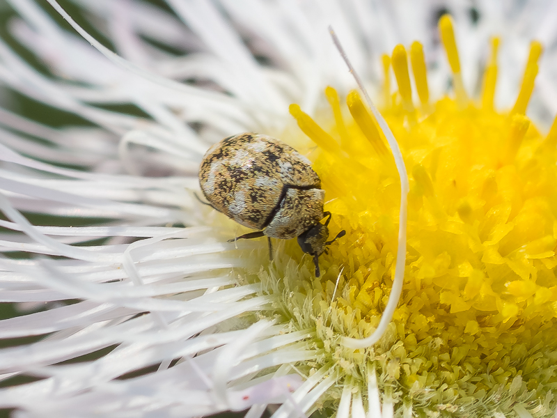 ヒメマルカツオブシムシ / Anthrenus verbasci (Linnaeus, 1767) カツオブシムシ科 マダラカツオブシムシ亜科 2020年5月 東京都町田市 2025年4月 東京都東大和市 体長 2~3㎜分布 日本全土に広く分布(世界的な害虫)食草・寄生植物等 (自然界での...